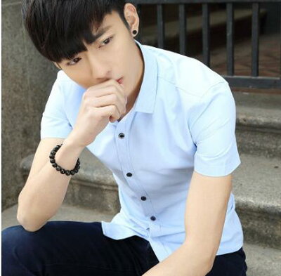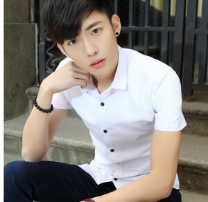 三点送料無料オールシリーズ紳士/夏メンズファッション/メンズ半袖ワイシャツ/韓国スタイル/スリム/レジャー/柄/白黒シャツ/トップス/半袖シャツ カジュアルシャツ/ワイシャツ/ボタン レギュラーカラー/カジュアル職業 ビジネス通勤用